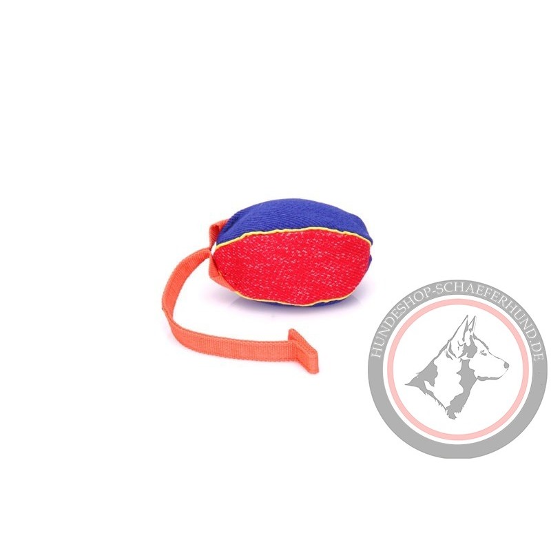 Unter zahlreichen Spielzeugen in unserem Web-Hundeshop möchten wir Ihnen dieses kleine, gefahrlose und effektive Beißkissen in Form des Balles, der sowohl für Spaß, Training oder Biß-Arbeit mit kleinen und mittelgroßen Schäferhunden als auch für Erhöhung der Motivation und Drive des Tieres benutzt wird, präsentieren. Das Zubehör wurde aus dichtem French Linen Stoff mit Hilfe der starken Mantelfäden genäht und mit gefahrlosem spezialisiertem Material mit Futterdecke, die weich und elastisch ist, gefüllt. Die Nähte sind nach innen geschaffen, der Nähstich ist vor dem Aufgehen der Heftung verstärkt. Das Accessoire hat einen bequemen T-förmigen Handgriff aus Nylon für bequemes Halten zwischen den Fingern und leichtes Werfen dem Tier. Die Farbe des Werkzeuges ist kombiniert: rot-blau oder schwarz-gelb, ohne der Option zu wählen. Geliefert wird die Farbe, die am Lager zur Verfügung steht. Dieses French Linen Beißkissen gibt die Möglichkeit erfolgreich den Schäferhund zur Arbeit mit dem Beißarm vorzubereiten, da bei Schaffung des Hetzarmes wird ähnlicher Stoff benutzt. Das Tier gewöhnt sich an das Material an und wird leichter mit dem Beißarm arbeiten. Auch viel Spaß bringt solches Spielzeug einfach beim Spielen damit.