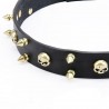 Dank perfekter Qualität und originellem Design wird Ihr Schäferhund dieses Leder Halsband gern tragen. Es ist aus echtem angenehmem im Griff Leder geschaffen und mit kleinen Schädeln und Spikes aus Messing dekoriert. Es gibt eine sichere Schnalle und starken D-Ring für Hundeleine, der einen großen aktiven Hund aushalten wird. Die Kanten sind abgerundet und schaffen keinen Dyskomfort.