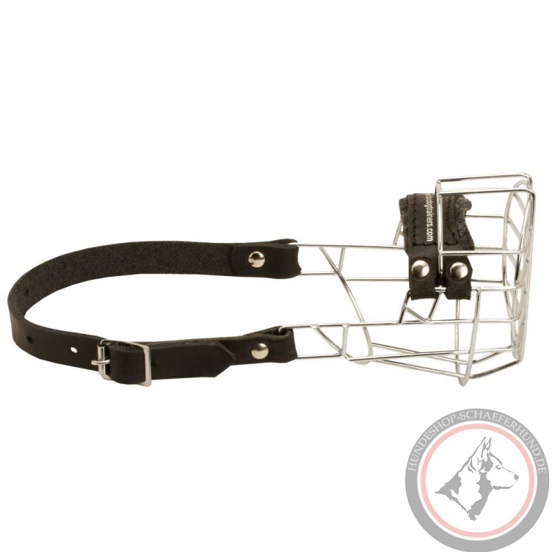 Walking muzzle for GSD and Malinois. Ideal solution for comfort and safety. Chrome-plated steel. Leather straps. Steel fittings. Felt lining on nose bridge. Free mouth opening, breathing, panting, barking. No biting and picking up from the ground.